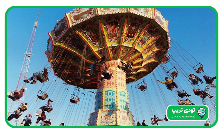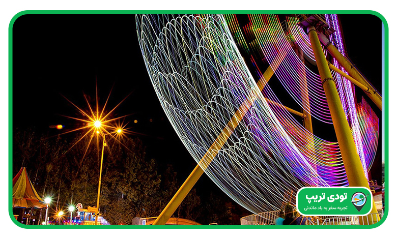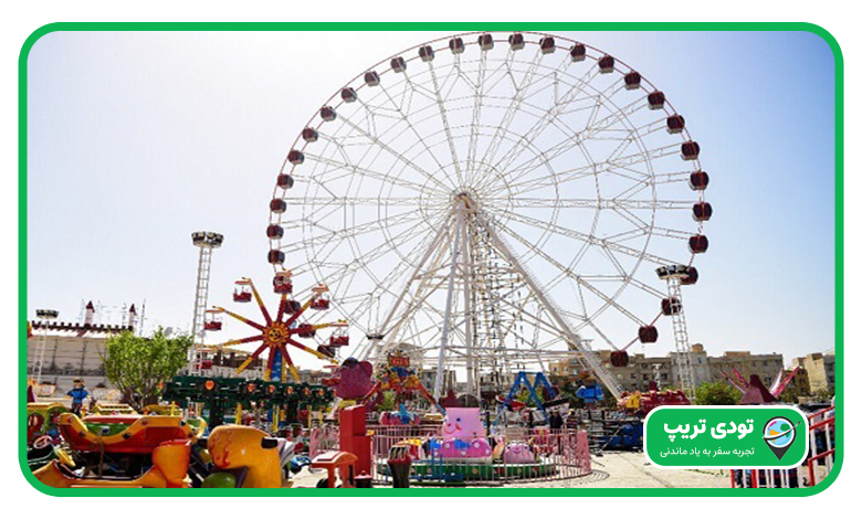 چرخ‌وفلک فرصتی برای دیدن کل محیط پارک از بالا فراهم می‌کند. این وسیله مناسب تمام سنین است.